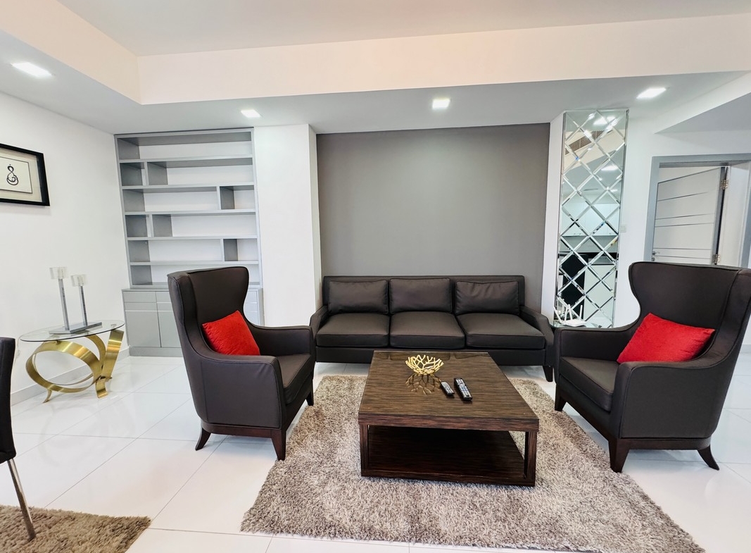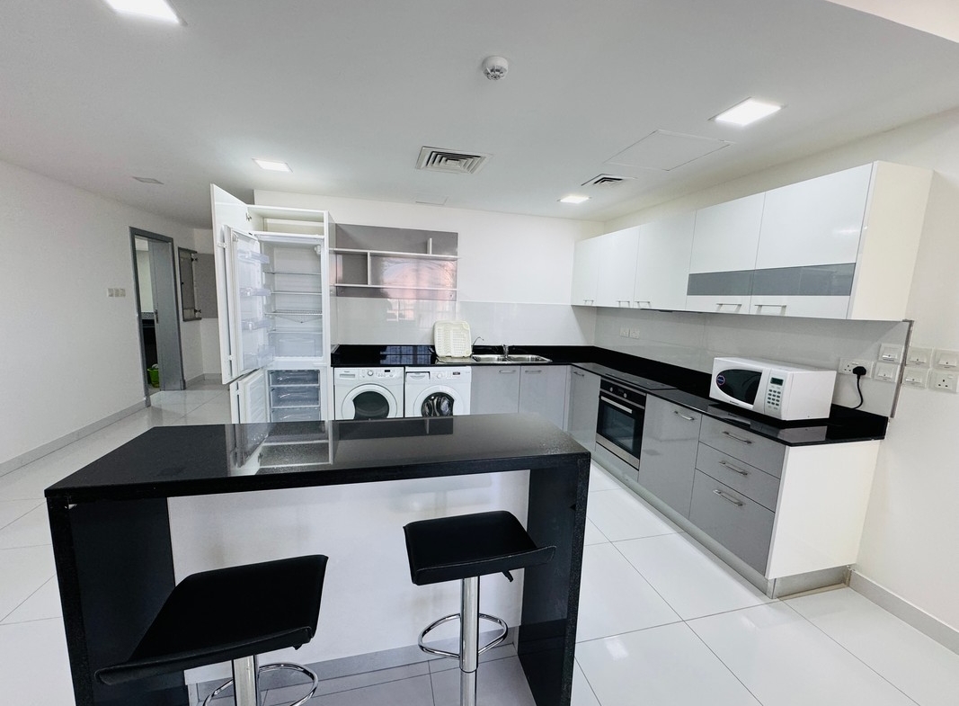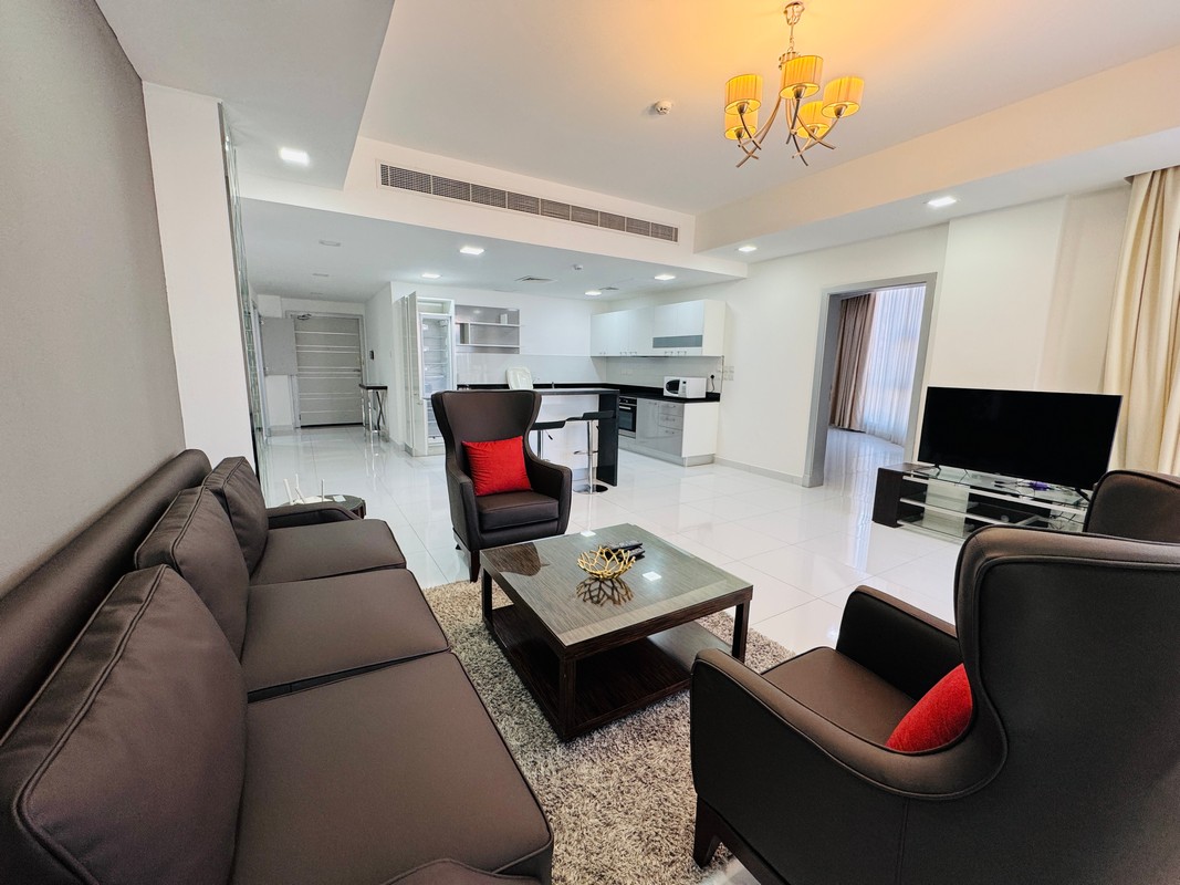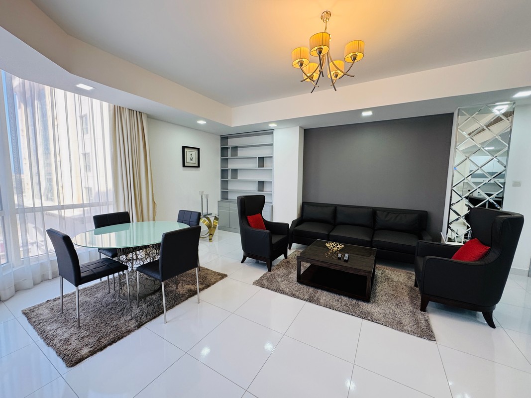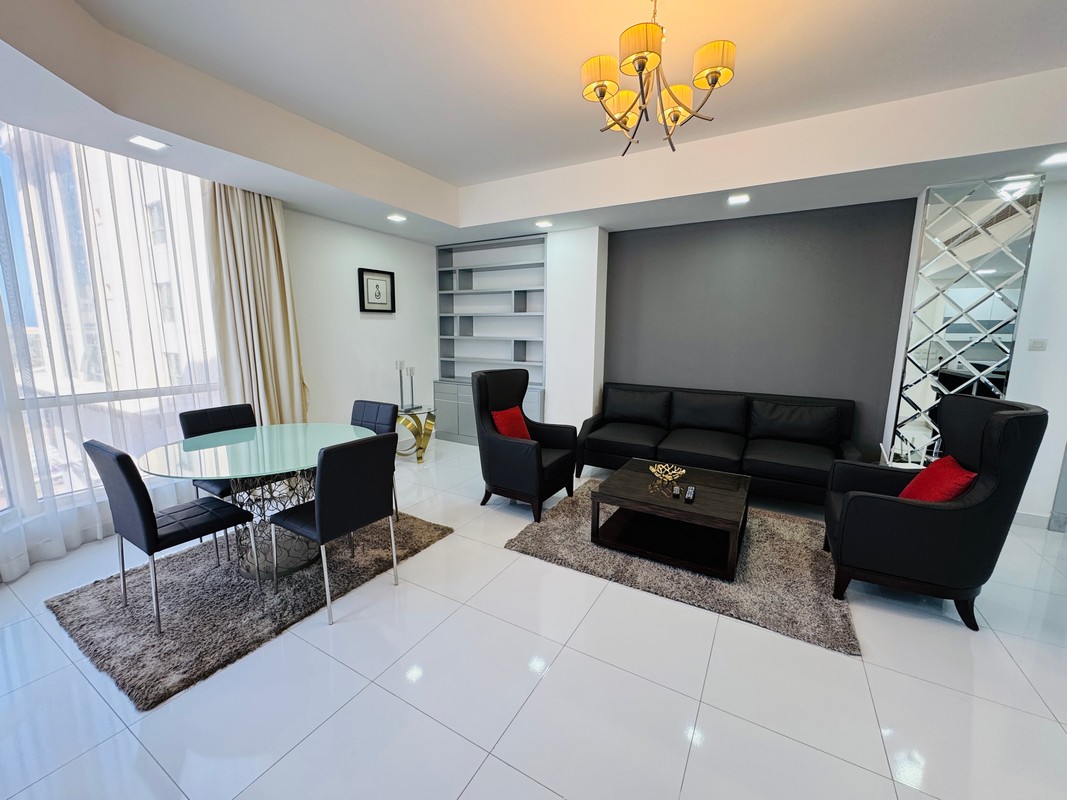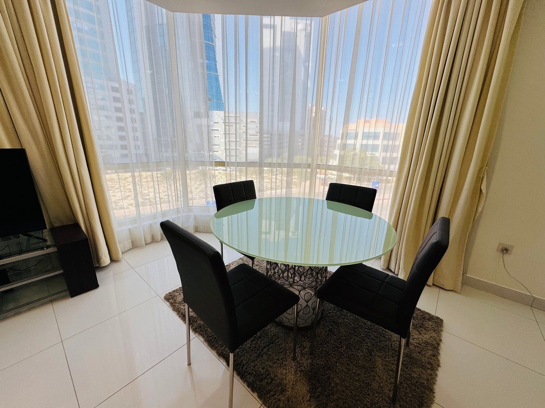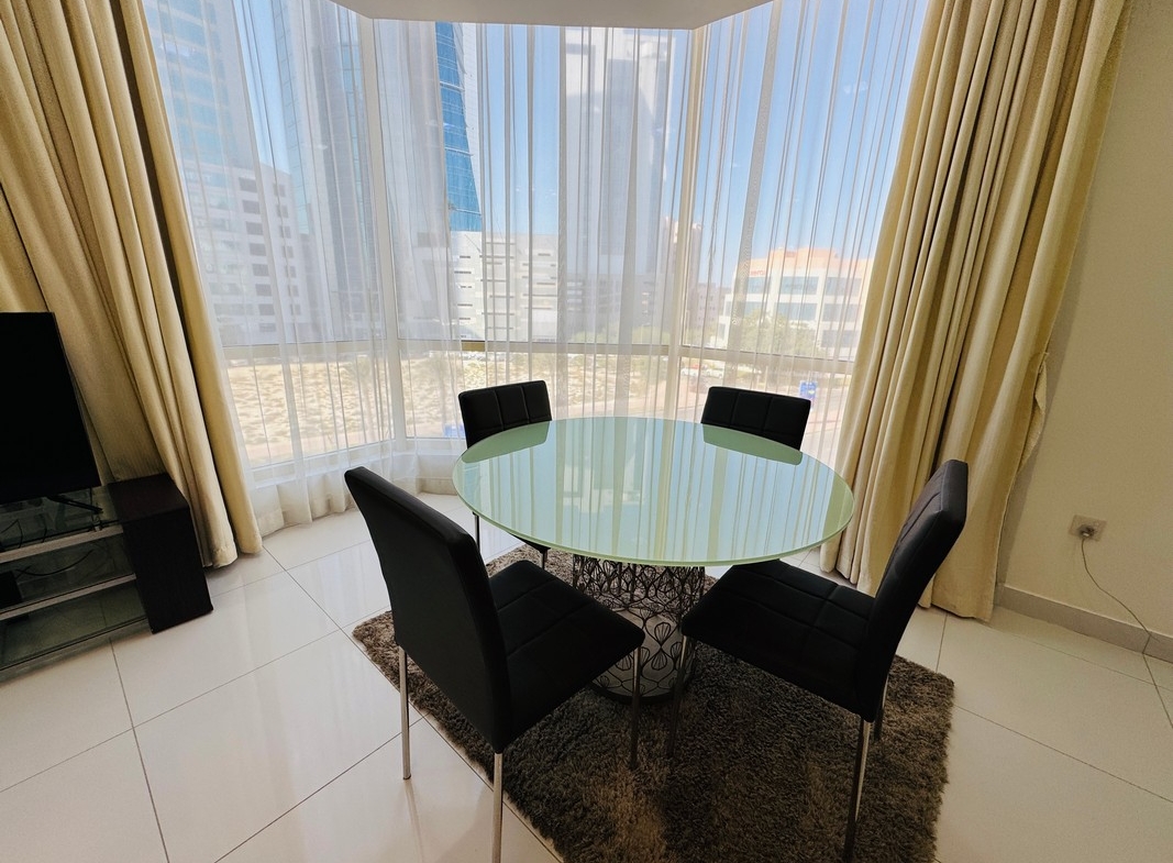 The apartment is situated in the heart of Seef, known for its proximity to premier malls, banks, restaurants, and easy access to major roads, highways and city center.